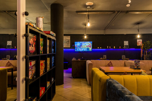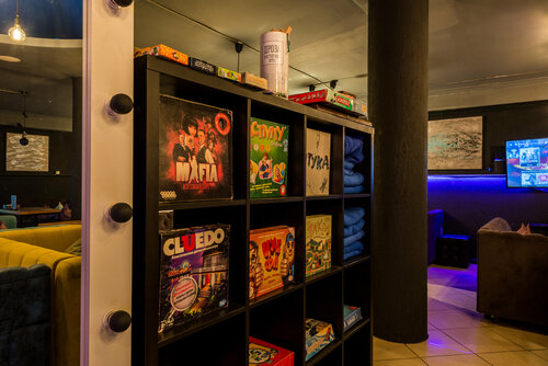 Неплохой выбор настольных игр + игры на приставках.